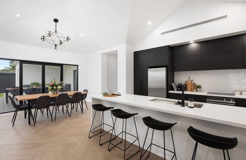 Abode accommodations offer pure luxury, Abode has been completely renovated to have a contemporary yet classic style. Offering outdoor bliss with its huge pergola area including BBQ. The house offers free fast WIFI and a main 65 inch TV. All bedrooms come with their own TVs as well . Abode is located in the centre of Mount Gambier North facing and looking over the beautiful Vansittart Park. For those cold winter days Abode offers ducted heating and a gas wood fire.
