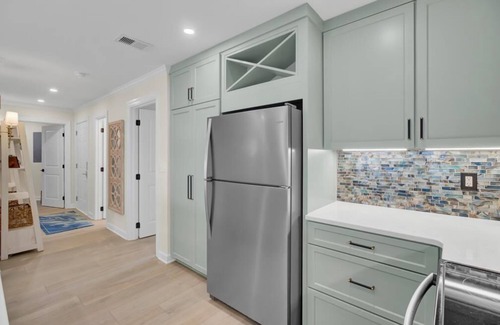 Following a complete February 2025 renovation, coordinated by a professional decorator, “Above All Else” furnishings and design are truly special. The interiors are influenced by ocean-inspired elements with a freshly painted palette of white, blue and green that creates a comfortable, laid-back beach vibe. Luxury vinyl flooring has been installed throughout the entire condo.