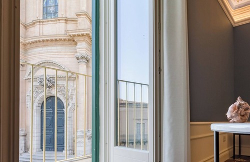 Achille, luxury accommodation in the historic center of Ragusa Ibla, with a beautiful view of the Cathedral of San Giorgio and the square. Inside an ancient stately building, facing the cathedral façade, it is located in a pedestrian area, just a few steps from the city's monuments. It has a very elegant interior and is ideal for a couple.