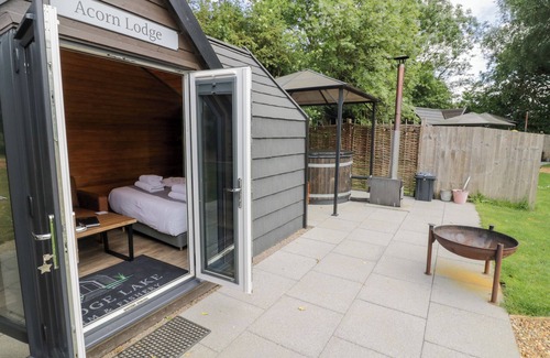 Acorn Lodge is a charming ground-floor lodge that can be found resting within the village of Chacombe near Middleton Cheney, Northamptonshire. Home to one double bedroom in a studio-style layout, this dwelling can sleep a total of two guests. The bedroom is served by a shower room and the interior is complete with an open-[plan living space with a kitchen, dining area and a sitting area. Outside there is a garden with an outdoor seating area and a hot tub. Off-road parking is available. Acorn Lodge is a wonderful setting for a relaxing retreat to the East Midlands. Note: This property does not accept any children under 18 years old - this includes infants.