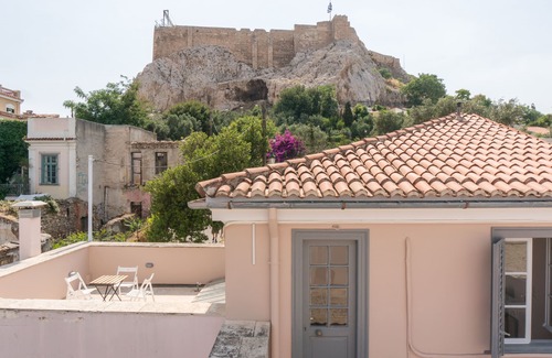 An utterly charming 2 storey restored dwelling in the heart of Plaka with private roof terrace and breathtaking view of the Acropolis, so close you can almost touch it! Enjoy the coutyard garden and historic feel of this 19th century building, with high ceilings, lots of natural light and modern facilities.