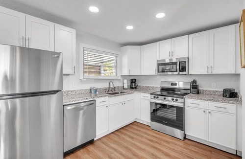 Located in the heart of Treasure Island, you'll find yourself just a short stroll from the beautiful beach, perfect for sunbathing and swimming. Explore nearby attractions like the historic Fort De Soto Park, John's Pass Village and Boardwalk in Madeira Beach, or venture over to Tampa for a day to check out the Florida Zoo, Florida Aquarium, Hard Rock Casino, Busch Gardens and more!