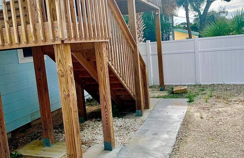 The SeaEsta Beach House 2nd fl Apt itself is adorable, bright, cozy and clean. Smart lock and security cameras on the outside. You will definitely feel the Beach VIBES. This beautiful SECOND FLOOR APT. has its OWN PRIVATE ENTERANCE from first floor guest. Free parking with designated parking for both units. The SeaEsta 2nd floor unit has 3 bedrooms 1 bath a full working kitchen and a sofa sleeper (sleeps 8)