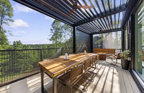 This luxurious brand new villa is nestled in the Heart of Hocking Hills overlooking Adamina Canyon. Experience a Colorado mountain villa right here in Ohio, while enjoying 100 acres of private serenity, vistas & picturesque landscape. With exceptional amenities such as 2 overlook decks, a 7-person hot tub, outdoor dining with motorized bay screens & fans, a propane fire bowl, along with plenty of indoor living space! This Villa offers 4 free parking spots with extra shared parking if needed!