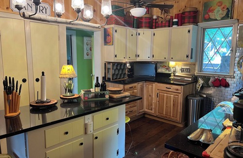 Are you seeking simple style, clean lines, and minimalistic décor? Then book elsewhere! If Adirondack backwoods charm and mid-century country chic had a baby, this would be it. Renovated bathrooms and kitchen add modern conveniences and luxury touches, while vintage treasures, collectibles, statement pieces, and flea-market finds evoke a frontier atmosphere.