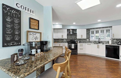 The home is tastefully furnished and comes with everything you need to enjoy Florida living at its best. It has 3 comfortable bedrooms, two of them with king-size beds and one with two twin beds with trundle, and two beautiful bathrooms, a gorgeous and modern kitchen fully equipped with a pantry table for 4 people, a beautiful formal dining room for 8, a spacious living room with TV, large outside play/relax area with air hockey and pool table, pool area with lounge chairs, an outdoor bar with 4 stools (there is not outside Tv anymore as show the pictures), an outside dining table with umbrella and chairs, a BBQ and boat dock for 35 foot's boat with sofa and chair to enjoy the amazing sunsets! There are also 2 kayaks available for your use. Enjoy your home away from home! A Ring Camera is next to the front door for your security and ours. Enjoy extras like complimentary Wi-Fi, bathroom towels, linens, pool towels, and a full-size washer and dryer in the kitchen area. Upon request, we can provide a travel crib and a high chair for kids. As a courtesy, we provide a welcome kit with toilet and cleaning items that include: a dishwasher, detergent/sponge, paper towel, garbage bags, toilet paper, bath gel, shampoo, and conditioner. We will not be responsible for filling them during your stay.