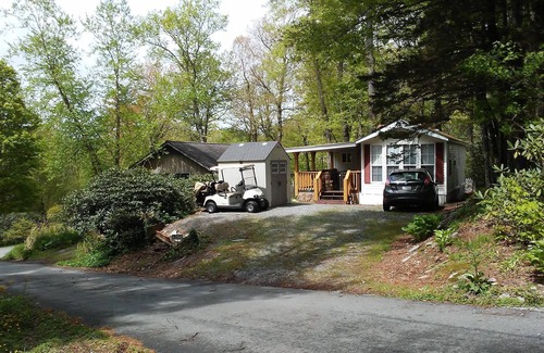 Cute 2 bedroom, 2 bath Park Model in the mountains with large covered porch and rear deck with firepit. Fun, active community in the mountains! Nicely paved roads for easy access! Golf, Tennis, Pickleball, shuffleboard, heated outdoor pool, billiards, ping pong, fishing in stocked river and lake, hiking, dancing, cards, Yoga, and many other recreational activities! Community has their own restaurant; or you can enjoy a great selection of restaurants closeby in Banner Elk, Newland, and Boone. Hiking on the Appalachian Trail only 3 miles away. Explore Grandfather Mountain. Or, visit one of the many wineries or festivals in the area. Bedrooms: 1 queen bed in Master bedroom, 1 queen sleeper sofa in living room, and set of bunk beds in separate bedroom/laundry room. No carpeting, new 2022 deluxe vinyl oak-plank flooring. For more info on the community go to: https://www.linvillelandharbor.com/activities/member-activities/