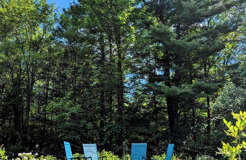 Enjoy a quiet open yard and garden with fire pit (wood and fire starters provided), seasonal veggies and flowers, lounge chairs, and outdoor dining table. Large open deck with grill and bistro table—perfect for basking in the sunshine amidst the treetops while enjoying your morning coffee.