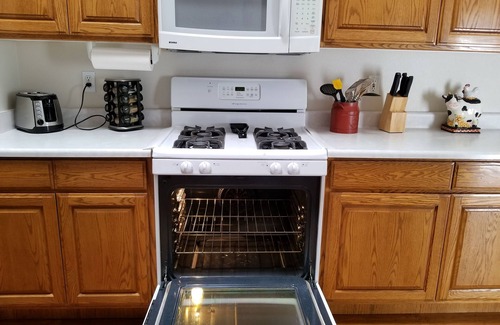 Access to all ground level parts of the home, except the garage and the basement. A quite tenant lives in basement suite with separate entrance. A large outdoor BBQ propane grill is available for use. It is located next to the kitchen exit door. Large yard with shade trees.