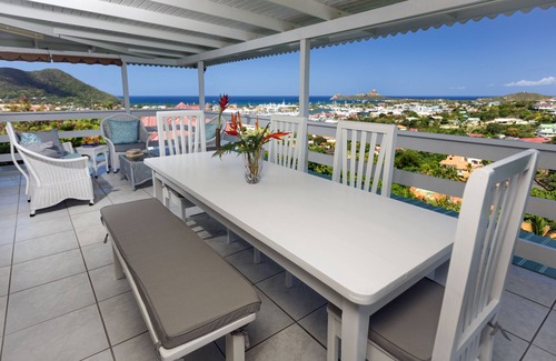 Hosted by a Super Host this 2000 sq ft. top floor level of a 2 story house has stunning views of the Caribbean Sea, the Marina and Pigeon Island. Located on a private residential road, This spacious top floor apartment has its own gated entrance with covered garage right at the front door. Location is key with this property being just 2 minutes drive or a 15 minute walk to the Marina & Rodney Bay.