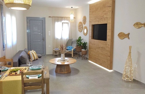 Aeraki Luxury Apartment - 2 bedroom apt in Kalymnos - 400m from Kantouni Beach is located in Panormos. Aeraki Luxury Apartment - 2 bedroom apt in Kalymnos - 400m from Kantouni Beach provides accommodation, featuring Security/Safety, Bedding/Linens, Wellness Facilities, among other amenities. This Apartment features Security/Safety, Bedding/Linens, Wellness Facilities, to make your stay a comfortable one.