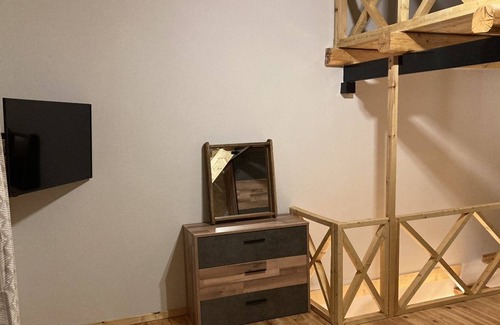The Aeras maisonette has 3 levels: The ground level is 30 sqm and has a sofa bed that accommodates 2 people, a dining table that seats 6 people, a fully equipped kitchenette and bathroom. The first level is 30 sqm and accommodates the main bedroom with a double bed and balcony and the third level is an open loft that is 20 sqm and accommodates 2 single beds.