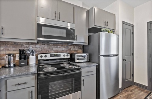 This is a brand new warm stylish condo centrally located in College Station close to TAMU (Aggie Condo) . 2 master bedrooms with king size beds and a full-bathroom ensuite in each master bedroom. *2 parking spaces in front of units. *1.5 guest bathroom down stairs. Community desk work space upstairs. We provide community pool, pool table and gym available in community. This condo has a full kitchen with nook ready to prepare meals and washer & dryer located upstairs.