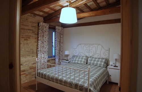 The house, nestled in the countryside of Petriolo, is located in a panoramic position among the hills and the Sibillini mountains, the location absolutely confidential has a well-kept garden with swimming pool and a large porch with tables, chairs and barbecue. There are also poolside loungers, outdoor shower and a small bathroom. In the apartment on the first floor, named Matthew, there is a comfortable and fully equipped kitchen, a dining room overlooking the garden, a bathroom with shower and two bedrooms, and one of them has a loft that can accommodate a person. It equipped with TV and wi-fi in the garden. The guests of can freely use a large, comfortable barbecue where you can organize nice and tasty barbecues,