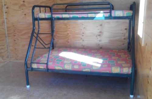 The Hut consists of a double bed single bunk unit ,fire place ,bench unit with utensils and outside s/s sink unit for washing for basic living.