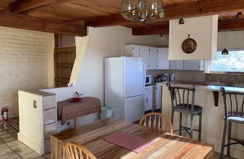 This 2 bedroom, 2 bath home was remodeled from a home to a fully furnished rental with a unique and vibrant copper (cobre in Spanish) warmth. The master bedroom has a king bed, two comfy chairs and a small desk. It has a huge master closet and an open, connected bathroom. The second extra large bedroom has two queen beds, two comfy chairs, a dresser, and a small desk. The second bathroom is separate from, but adjacent to, the second bedroom. The living room has a very large and comfortable corner sectional, four comfy chairs and a large fireplace. In its basic configuration, the dining room seats 4, although 10 or more folks have used the space with the expandable table. Additionally, the dining area features a bar counter with stools that face the kitchen. The kitchen is extremely well equipped. The entire private home setting includes three outdoor seating areas with views of distant mountain peaks in or near Mexico. Dark skies provide great star viewing.