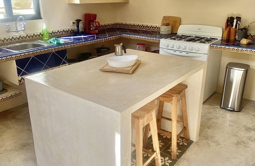 It is easy to picture a day here: walking to the mercado for fresh fruit in the morning, returning to take a refreshing swim in the pool, and later hosting friends for dinner under the courtyard’s warm glow. Each corner of the house seems to encourage connection—whether with others, with nature, or simply with oneself. The home has a modern yet colonial appeal, soaring high ceilings each room has a AC , the home has combination foyer and living room that flows nicely into the Large Dining area , off the Dining are double glass doors that lead to the covered patio . also off the Dining room is a hall that connects to the 2 pc bath and laundry and to a modern functional kitchen , with a glass door that also leads to the patio and plunge pool and a Casita / master suite , back inside the dining is the stair way that leads to two further bedrooms one with a king bed and the other with two twin beds and the Family Bath