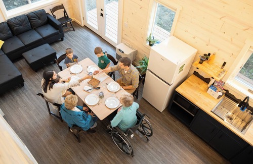 Escape to BlueWater BaseCamp, a modern boutique hotel and nestled in the mountains above Anchorage, AK. Enjoy an exclusive rental of 8 deluxe cabins and a Gathering House for events. Property sleeps up to 28 guests in 14 queen beds. 2 different sizes of cabins provide multiple options for groups. Each cabin has their own bathroom, kitchen and living spaces. 3 cabins are handicapped accessible and 2 are dog friendly. Reserve your exclusive buy-out of BlueWater BaseCamp and enjoy a tranquil retreat surrounded by nature, making it the perfect spot to relax, recharge, and in nature without straying too far from the city.