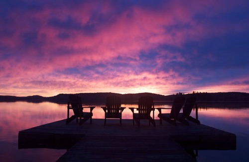 Canoe into the sunrise to look for moose on the Amable du Fond river. Swim to the floating sauna and heat up before plunging into the clean, fresh water. Fish for bass or trout, and relax on the dock or in front of the fireplace or campfire. Watch the kids play soccer or toss a ball while you sit on the cottage deck with a fabulous view of the lake. Consider an overnight adventure into Algonquin Park.