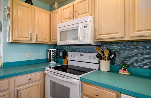 Your family will love the comfortably furnished and spacious open-concept living room/dining room/kitchen areas, and its cozy beach decor. The galley-style kitchen is well appointed and offers a wide variety of kitchen necessities. You will enjoy cooking and eating family-style meals with enough room for everyone to dine together at the dining table for 8.