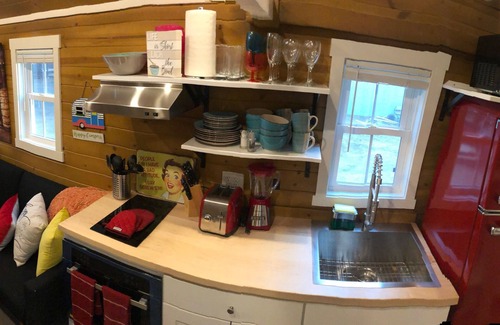 30 FT TINY HOME ... Brand New Custom Lakeview 2+1 Tumbleweed Tiny Home with 10X15 ft deck facing the lake for outdoor dining washer & dryer in unit, Just relax & unwind at Angelique's lakefront Tiny Haven with 6 remodeled cottages, 2 tiny homes, main house, 4 RV spots to rent sitting on 1 1/3 acre unique property with access to private pier, dock & boat ramp. Common usable grassy yard by the pier with beach & picnic area with firepit. Watersports toys onsite available to rent- pontoon boat, jet/ski boat, tubing stand up paddleboards, kayaks, pedal boat - so much to spend to do to spend quality time with friends and family. Other amenities: Corn hole, croquet, ping pong, card games, swings,, hammocks and mch more. Portable firepits & BBQ grill available for guests. This tiny home has a bedroom downstairs, bath tub, upstairs bedroom loft for the kids, fully equipped kitchen. A true experience and appreciating simple things in life. Other fun stuff: 35 wineries in the area, hiking, fishing , 2 casinos nearby.