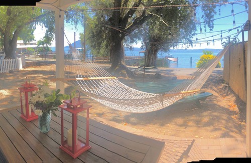 One bedrom Lakeview Cottage ... Inviting ...relaxing....cozy... Angellique's Lakefront Tiny Haven tastefully remodeled lakeview cottage at Clearlake-largest natural lake in CA. Sits on 1 1/3 acre unique property with access to private pier, dock & boat ramp. Common usable private grassy area with beach area. Perfect for family with watersports toys available to rent on site- pontoon boat, jet/ski boat, tubing, stand up paddlebards, kayaks, pedal boat- so much to do -spend quality time with friends and family. Other amenities: Corn hole, croquet, ping pong, card games, swings, hammocks and much more. Portable firepit & BBQ Gril available to guests.