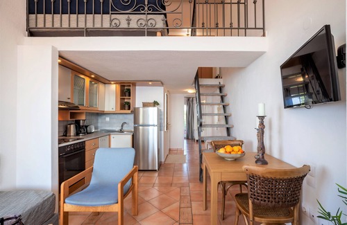 Top benefits the stunning views, the updated bathroom with the monsoon shower, the fully equipped kitchen where you can cook with a view, the extra living room space and the separate bedroom that ensures the privacy of the couple, while the kids sleep upstairs. Additional benefits, the two balconies and the short walking distance of the apartment from supermarkets, restaurants and shops, although a car is recommended if you want to explore the numerous nice beaches around.