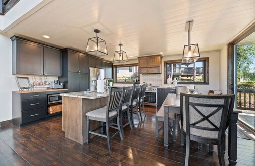 Tucked away in the heart of ski country lies this truly one-of-a-kind destination to fit all of your vacation needs. Boasting serene views, this home provides the perfect milieu for an unforgettable season of adventure as well as a lifetime of memories.Upon entering the cabin, you're greeted with a grand entry full of room to set all of you bags and gear from the day's travels, and large windows to truly encompass your surroundings. On the main level you are greeted with multiple entertainment spaces including two dining areas for larger groups and the main living area featuring large floor to ceiling windows that capture the rolling hills and amazing picture-perfect views. Continuing from the fully stocked kitchen complete with a coffee bar, stainless steel appliances, and all the essentials normally found at home you'll find more space to enjoy on the back deck. Your own private jacuzzi hot tub awaits as well as an outdoor fireplace, grill, and seating to kick back and relax. Enjoy these amenities with full time access throughout your entire stay. The master bedroom is also located on the main floor providing a luxury, king private suite complete with a dual vanity and walk in shower. Head upstairs to the oversized loft with plenty of seating to sit and share in conversation or sprawl out and play games with the whole family! Three more bedrooms can be found upstairs along with a private balcony to indulge in the breath-taking sunsets at the end of a long day. The bunkroom has two twin beds as well as a queen bed sleeping four comfortably. Across the hall a full bathroom splits two more additional queen bedrooms. One of which has two queen beds and the other housing one queen bed, accommodating a total of 10 guests in the loft space. Whether skiing, snowmobiling, hiking, biking and so much more the Black Hills are full of adventure and Altitude Adjustment is the perfect start and finish to all your explorations. Be our guests today and stay with us on your Black Hills getaway!