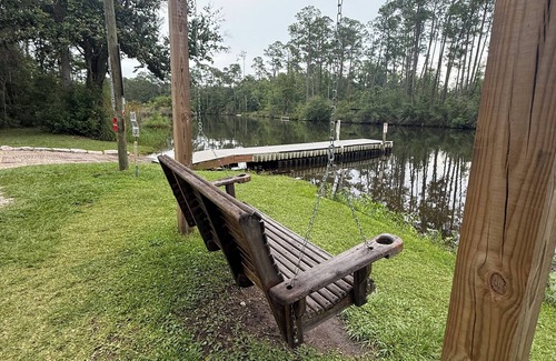 Located in Elberta, enjoy what this 1-bedroom cabin has to offer. Sleeps 4 comfortably. With nice amenities like iron, hair dryer, AC, and WiFi, guests can relax in the living room with a fabulous sofa bed. It's easy to see why you'll be able to unwind at our place. Away from the hustle and high prices at beach . Walk to the large pool or wolf bay dock with boat ramp on property. Gulf shores and orange beach only 10 minutes, pensicola only 20 min . Famous pirates cove only 5 minutes. OWA water park only 4 minutes. Close to everything ! Dollar general walking distance! What’s not to love. Golf cart friendly folks!
