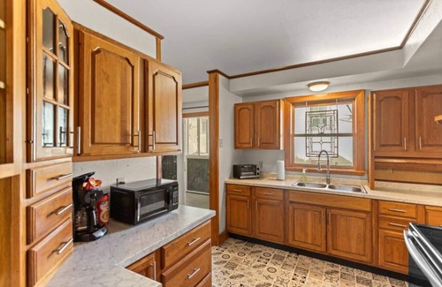 Cook up breakfast, lunch and dinner in fully equipped kitchen with custom oak cabinetry and all the basics including a full size fridge/freezer, a freestanding oven, a microwave and a coffee maker along with everything you need to brew up a fresh aromatic pot of coffee to get your day started right.