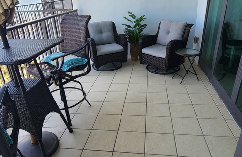 You will love our balcony where you have a sensational panoramic view of Lighthouse oin the Bay and the Gulf. The outdoor lounge chair for two, plus additional chair, chase lounge and table to enjoy the views.