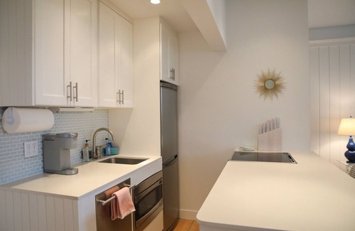 Experience coastal elegance in this meticulously renovated 2-bedroom, 1-bath designer condo, nestled in the heart of Nantucket’s iconic Historic District. Bathed in natural light from soaring ceilings, the open-concept living space blends contemporary flair with timeless charm. Both bedrooms are sanctuaries of relaxation: a primary suite with a sumptuous king-sized bed and a second bedroom featuring twin beds, all dressed in hotel-quality linens and deluxe mattresses to ensure restful nights.