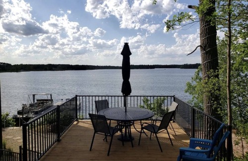 Nestled on the quiet shores of Upper Turtle Lake, Wisconsin, this modern 3 story lake home is pure joy! The privacy and relaxing atmosphere is a tranquil find for families and friends. The fall colors are unbelievable on upper turtle lake. Gazing upon the lakefront from the custom glass windows providing 180 degree panoramic views is an unforgettable experience. Immerse your party further with the optional pontoon rental!