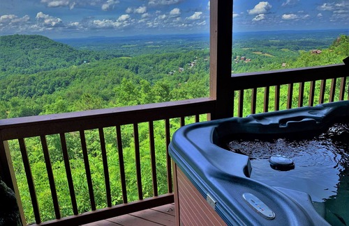 The covered deck offers an outdoor hot tub and rocking chairs. Kick back with a glass of wine and enjoy this amazing view. There is no better place you’ll want to be during a sunset! 🌄 . In the summer months you can end your day with a fantastic view of the Dollywood fireworks display. 🎇 🎆