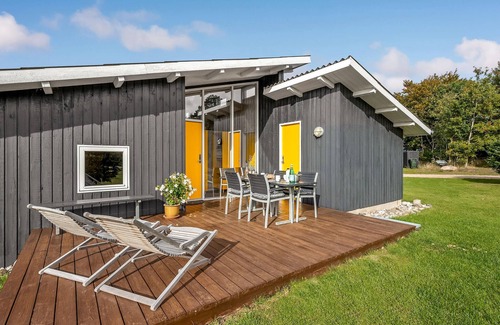 Only 150 m from the beautiful sandy beach you will find this spacious vacation home with enough space for a large family. The bright, modern interior is characterized by the wooden walls and many, pretty details and makes a very appealing impression. Spend many cozy hours with your loved ones in the tasteful, relaxed atmosphere of the house.