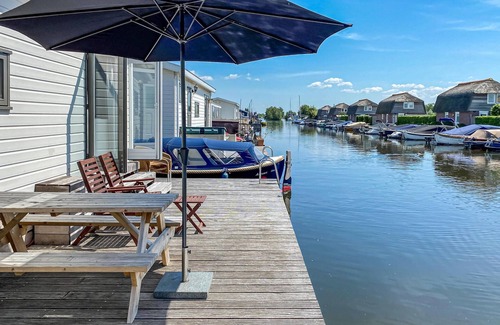 The chalet is located directly on the water. Digital television is available. The holiday home has a cosy interior. From the living room and the terrace you have a beautiful view of the water. The water is connected to the Loosdrechtse Plassen, you are also welcome to swim here.
