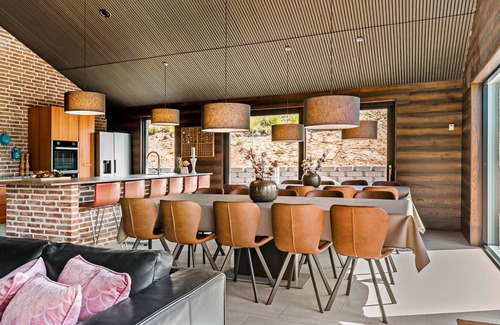 Get away from it all and spend a fun-filled holiday in this large holiday home with space for two large families or a larger group. Thanks to the many activities on offer, your holiday home leaves nothing to be desired. Inside, a stylish and open-plan kitchen-living room awaits you. Prepare your favourite dishes in the modern kitchen and enjoy them at the large dining table. Or serve coffee or tea at the kitchen counter. The living area is cosily furnished and invites you to spend relaxing evenings with a good book or lively conversation. Challenge your fellow travellers to a game of table tennis or billiards in the activity room, which has a very special atmosphere thanks to the decoration. Relax in the sauna afterwards.