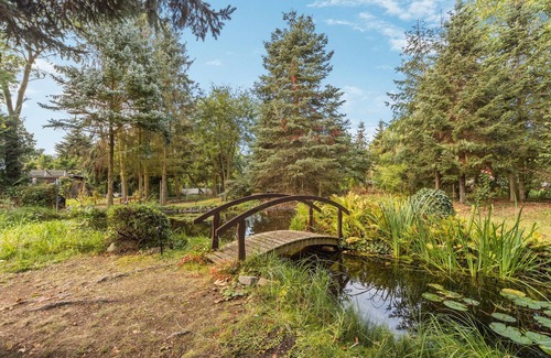 The large, fully fenced property with many trees offers plenty of space and play opportunities for the children and there is ample seating both in the garden and on the terrace. There is a large unfenced pond in the garden.