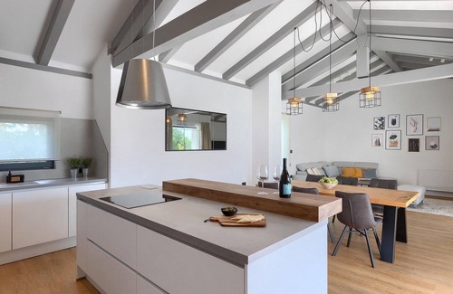 This charming villa is located in central Istria, just outside the village of Kringa and close to the towns of Porec and Pazin. Central Istria is a peaceful region known for its gastronomy and wines as well as its small and charming towns with excellent restaurants. Don't miss out on the main attractions of any summer vacation and enjoy the beaches and the sea, as all coastal towns are just a short drive away through the idyllic countryside. So visit Umag, Porec, Pula and Rabac, explore the sights, taste the specialties and enjoy the clear sea. For guests looking for sporting activities, the hilly landscape of central Istria offers the ideal conditions for cycling or hiking. The Kringa adrenaline park, the Funtana dinosaur park or the Istralandia water park are recommended for a fun day out with the family.