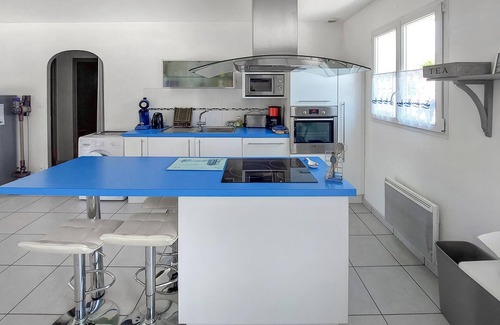 Your holiday home in Saint Michel en l'Herm is a modern and tastefully furnished house that reflects the typical style of the Vendee. Here you will find the ideal setting to relax and enjoy your holiday to the full. The house is in a quiet location, with no direct neighbours. Enjoy the privacy and spend sunny days on the beautiful terraces, which are equipped with comfortable deckchairs, or prepare delicious meals on the barbecue. A special highlight is the private boules court, where you can socialise with family or friends.