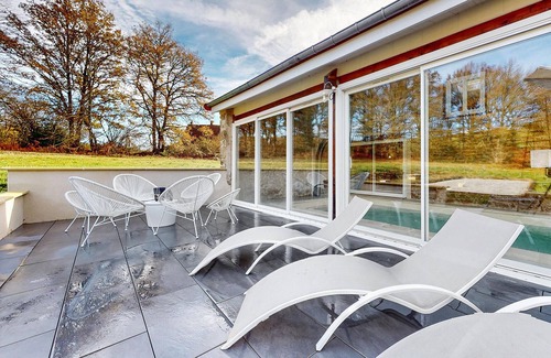 Do you want a high level of comfort and a special living experience? Are you a large family or perhaps several families holidaying together? Then this country house with top furnishings near a small lake is perfect for you. Nestled in a beautiful rural setting, this huge house on two levels with outdoor pool, indoor pool, whirlpool and sauna will give you a great holiday. The spacious house impresses with its rustic details such as ceiling beams made of natural wood and exposed stone walls, and the interplay of wood and white gives the house something special. Amateur chefs can work their magic in the large kitchen, while others can make themselves comfortable in one of the living rooms. Sunbathe on the terrace or use the indoor pool on cooler days.