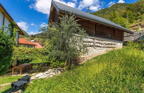In the Soa Valley there is a renovated house with typical architecture of the local settlements. On the ground floor there is a large kitchen and a dining room with access to a smaller garden, which is partially shaded by a pergola. Underneath there is a larger table and garden furniture as well as a practical barbecue for preparing meals. The garden also has a hot tub and a smaller relaxation area. The sauna is directly connected to the smaller bathroom with access to the garden. Upstairs there is a large master bedroom with a high ceiling and magnificent views of the surrounding hills. The house is ideal for families and anyone looking for an active holiday, as there is a wide range of attractive adrenaline and sports facilities nearby. There are children's playgrounds for all the villagers just 30 metres from the house. Nearby are the Tolmin gorges, which are the lowest and probably the most beautiful entry point to the Triglav National Park. Tolminka is a beautiful and lively river of intense blue colour, which flows into the emerald green beauty - the Soa - in Tolmin. The Soa River and the Tolminka River, both in the immediate vicinity, offer a wealth of activities such as rafting, kayaking, canoeing, river fishing and emerald water swimming.