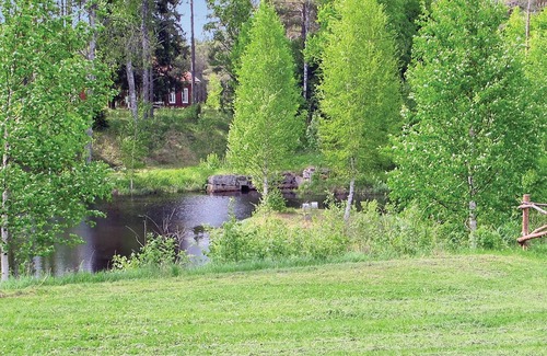 Red cottage on a small pond. From the balcony you have a view of the water. Kitchen next to the family room. Bedroom 1 is a through room to the bedroom with the bunk bed. For those who want to swim, there is a fine sandy beach at the catch lake about 450 meters away. It also offers good fishing opportunities. Boat or canoe can be rented. The sauna offers a warm bath after skiing on the lake. Near Vaggeryd in Småland you will find shopping of all kinds. Jönköping is worth a visit. Shared washing machine. Neighbor S04070.