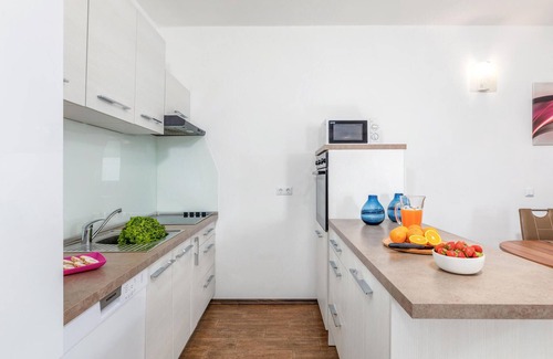 The first floor has a spacious living room with kitchen and dining area, bedroom and a bathroom. Upstairs are three bedrooms and another bathroom. In the fenced garden there are children's playground equipment for the youngest guests, while the adults can relax in the hot tub. End the day in the sitting area with a good drop of Istrian wine or prepare food on the grill.