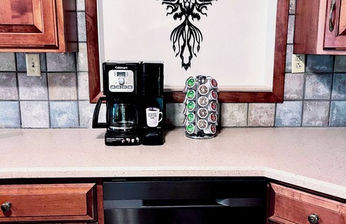 The kitchen is fully equipped with everything you need to cook a nice meal. There is a double oven, fridge, microwave, coffee maker, small blender, dishwasher, and toaster. Coffee, both regular and decaf, is provided. We also have a water cooler machine that provides bottled water for drinking that has options for hot, cold or lukewarm water. Great for making hot tea which is also provided.