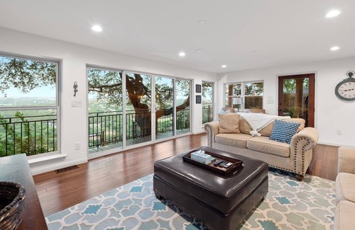 Welcome to our "Treehouse" on Lake Austin! This home includes a living room with large windows that give you a beautiful view of Lake Austin and part of Lake Travis and Mansfield Dam —fully furnished kitchen, dining room, laundry room, three bedrooms, two baths, and multiple exterior decks including a hot tub where you can relax and soak in the most beautiful view.