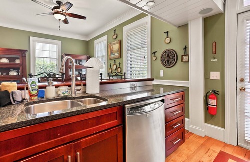 Here, you can experience history in one the city's oldest homes, circa 1806. Immerse yourself in the architecture & historic details, while enjoying all the modern comforts: updated bathrooms, smart TVs, a gourmet kitchen, Wi-Fi, a parking space steps from the front door & a gorgeous private courtyard complete with outdoor seating, bubbling fountain & vintage statue as your own personal oasis in the heart of the historic district.