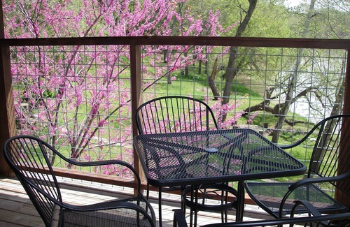 Beautiful Log Treehouse: We bought this cabin in the summer of 2009 and feel so fortunate to be able to share it with guests and friends and family. All three of our kids (now grown) love coming here to kayak, fish, golf, bird watch, relax and explore with their families. Our cabin is nestled high up in Pecan, Sycamore, Mimosa and Redbud trees. The view from the upper deck is fantastic. Great for bird watching. We hear the owls at night and watch red tailed hawks make nests and raise their babies. We have left the chicken coop standing as some day we hope to retire here and raise a small flock. You can't beat this for a perfect vacation spot whether you're wanting adventure or relaxation.