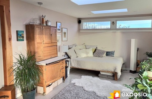 This is an open-concept home, that is offered as a bachelor suite. The sleeping quarters may be enclosed via curtains at night but then enjoyed open as a living room, during the day. French doors lead to a spacious deck with amazing ocean and mountain views. This home is light filled and bright, yet cozy and private. Located on a small cul-de-sac, against the back drop of a beautiful forest this elegant and well-appointed space has everything you need to feel at home. Enjoy this welcoming space as a retreat or make it your sanctuary after a day of exploring all that the Comox Valley has to offer. Enjoy endlessly changing vistas where the ocean and sky will replenish your spirit! Recharge by the woodstove, take a luxurious bath or a re-vitalizing rain shower or simply enjoy the ever changing and spectacular views. Located close to the King Fisher Resort and Spa, Courtenay, Cumberland, Comox and Crown Isle Golf Course and Mt. Washington Ski Resort.