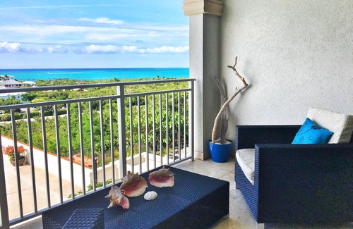 This stylish unit is located in the upper building, on the second floor, providing you with an incredible 180-degree view over Grace Bay.